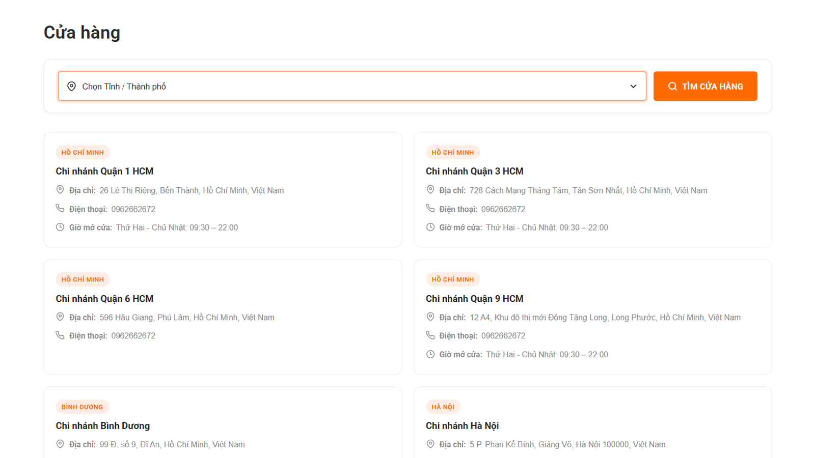 Danh sách cửa hàng được thêm bằng shortcode [menu_store_finder columns=””]. Có hỗ trợ ux builder với theme Flatsome.